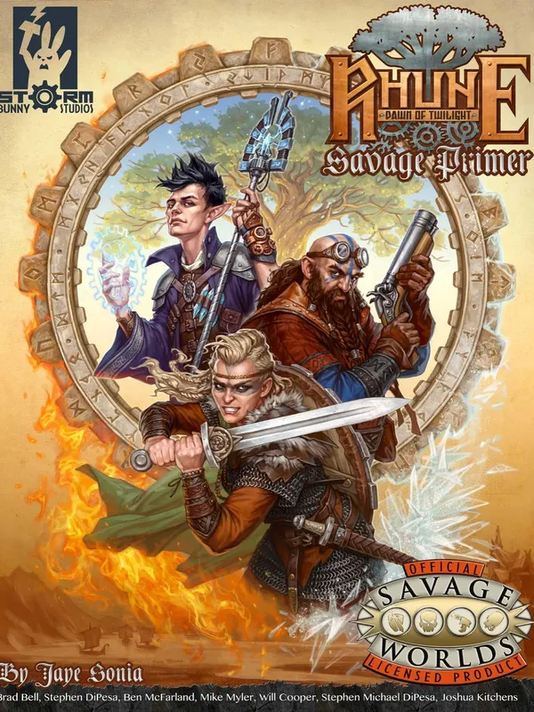 Originally inspired by some of the greatest campaign planar and steampunk settings, Rhune: Dawn of Twilight is truly its own genre, one we affectionately call stormpunk. It is a genre inspired by steampunk, but one that took a radically different turn, both in terms of culture and technology. While it certainly has some similarities to steampunk as a genre, stormpunk trades steampunk's monocle, Victorian sensibilities, and top hat for a drinking horn, a gear-shaped torque, and a gun-sword. It embraces electricity, but throws off the yoke of Earth's normal history and asks the question—what if Tesla had been a magician? What if magic and electricity had developed side by side? What if "steam" had lost the technological race and man learned to call power from the very sky itself? All of these questions, alongside the explorations they give birth to, are what give life to stormpunk.