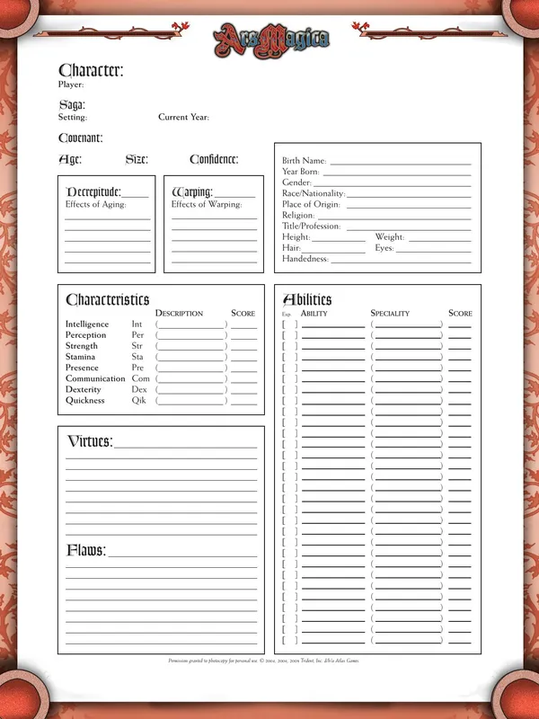 Imagine an age where myth is real and where the superstitions of the common folk hold true: faeries dance in forest glades, angels protect the Church, demons corrupt the weak, and wizards wield magic beyond the ken of other mortals. You play these magi, gathered in covenants with your allies and servants, unlocking secret powers and creating wonders. You and your friends will also portray the loyal companions and grogs who stand with the magi, as a buffer between them and the mundane world that often misunderstands their power and motives. When adventures draw you out into the medieval world of Mythic Europe, your stories are the stuff of legend.