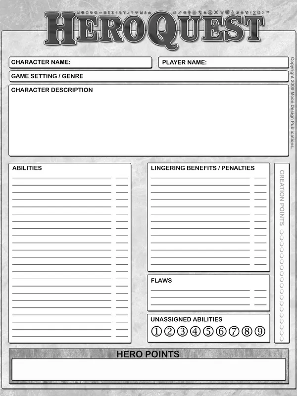 From the publisher "HeroQuest is the innovative, dynamic, and flexible rules engine by Robin Laws, suitable for play in any genre or setting. It present a simple and flexible system that allows Game Masters to make decisions the way authors and screenwriters do when creating novels, TV episodes and movies.