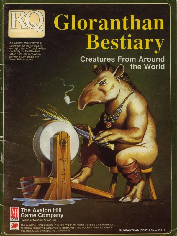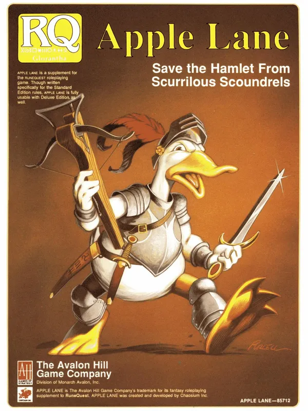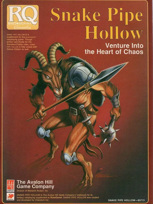 Third edition, designed by Chaosium but published by The Avalon Hill Game Company. First version of the game to include single-percentile skill increases, magic points, fatigue rules, and sorcery.