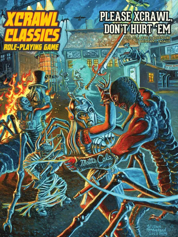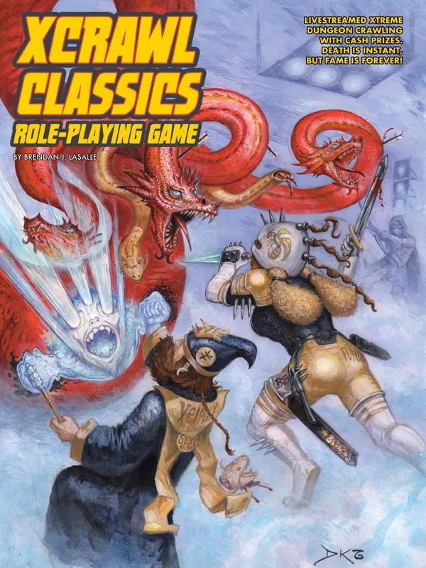 Xcrawl is an unexpected blend of genre elements that create an offbeat adventure game of strategic dungeon crawl action, in a harsh dystopic setting of absolute authoritarianism and rigid class conflict, with a quirky alternate modern history, a carnival mirror view of the strange world we live in, and a treatise on the phenomenon of fame in our celebrity-worshipping culture. It’s a grand strategic challenge that forces out-of-the box thinking by presenting crawlers with improbable situations that they simply could not discover in a standard fantasy setting. Most of all, Xcrawl is fun—monster-slaying, sports-car-winning, crowd-pumping, face-on-the-cereal-box fun!